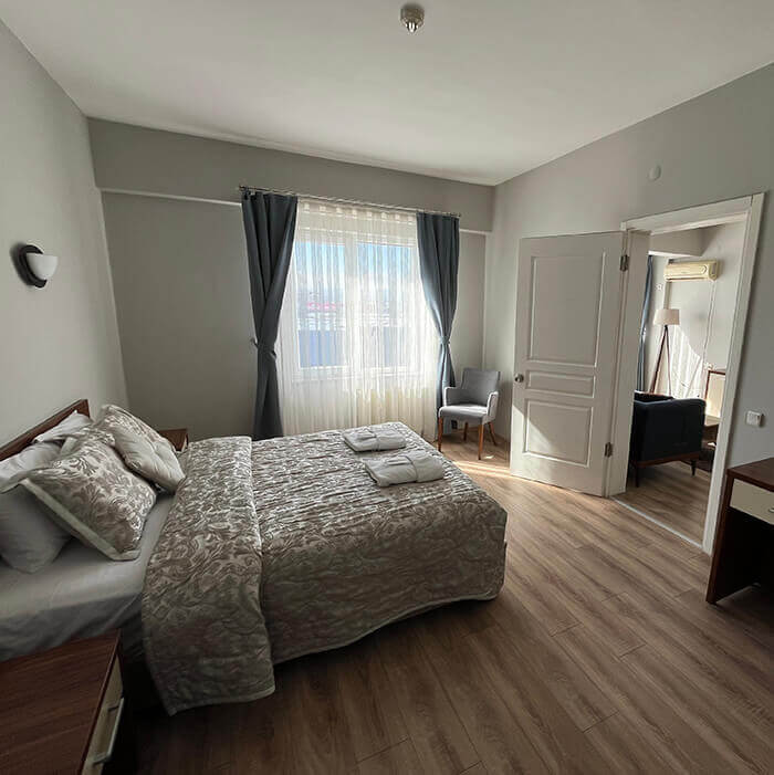 Suit odalarımız misafirlerimizin ihtiyaçlarını karşılayan konforda döşenmiş olup evinizde ki rahatlığı bulmanız amaçlanmıştır.